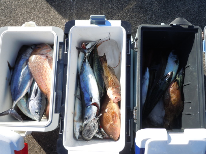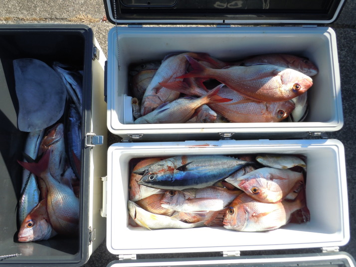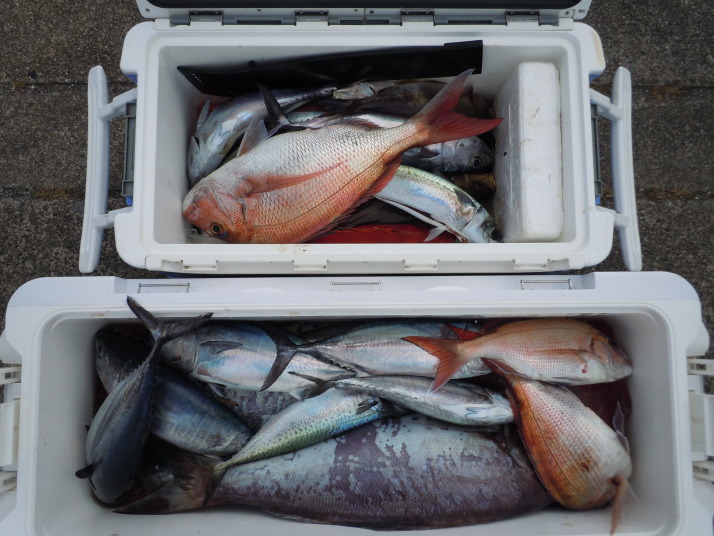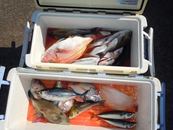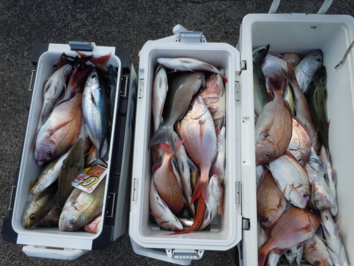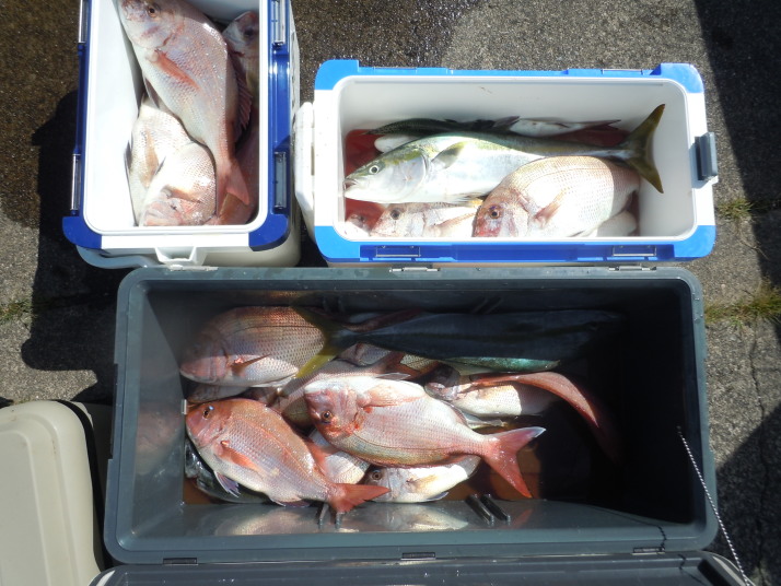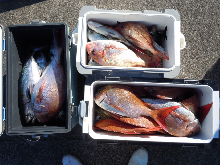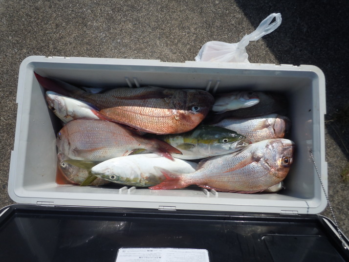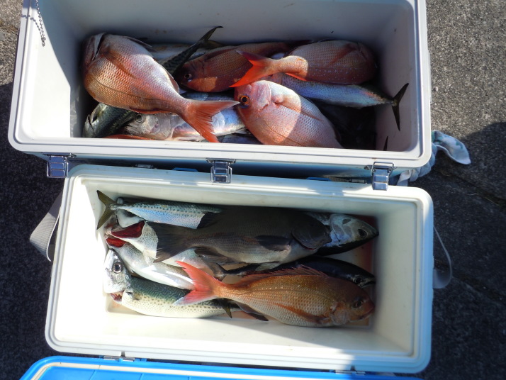 | 12/14 | 海野沖 | マダイ 小ダイ キメジ メダイ キントキ イサギ サバ |