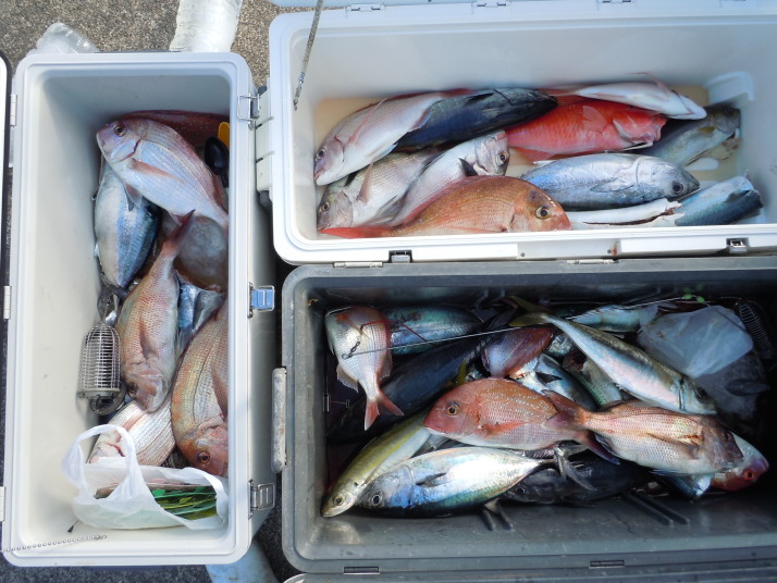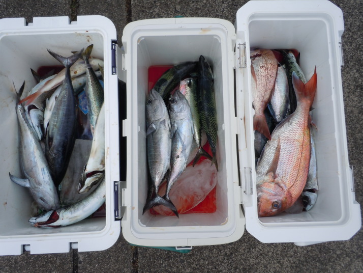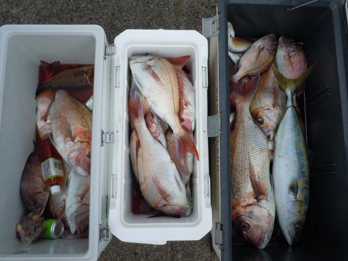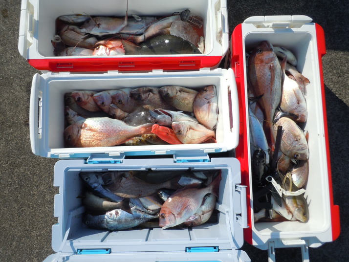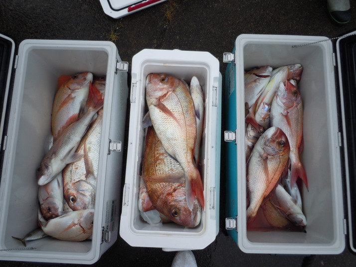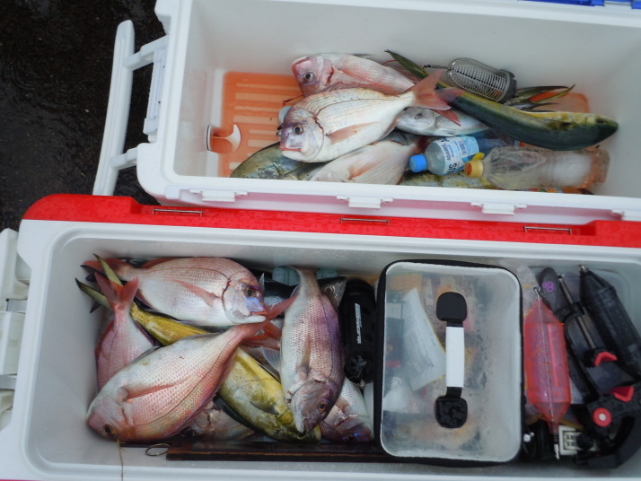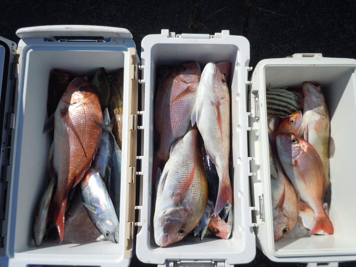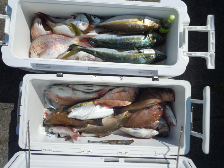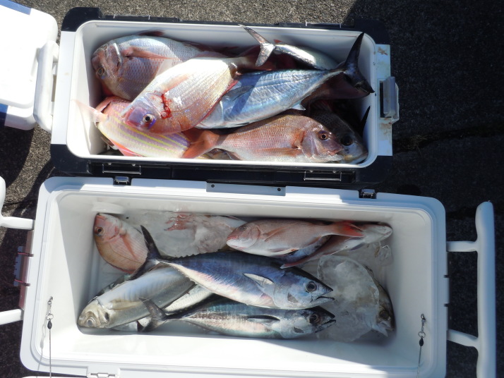 | 12/14 | 海野沖 | マダイ 小ダイ キメジ メダイ キントキ イサギ サバ |