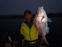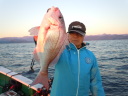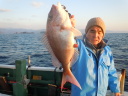 南風が強くなり、少し早上がりしました。 今日のマダイは、良い型でした。 |