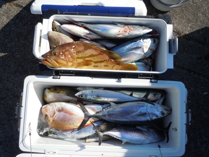 | 11/21 | 海野沖 | マダイ ハナコ キメジ メイチ オオモンハタ ムロアジ サバ イサギ ウマズラ ソマ コブダイ |